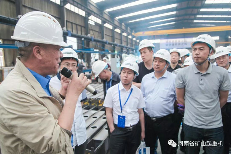 24日下午,河南礦山迎來了多批重要的客人,國(guó)家質(zhì)檢總局特種設(shè)備局相關(guān)領(lǐng)導(dǎo),中國(guó)重型機(jī)械工業(yè)協(xié)會(huì)相關(guān)領(lǐng)導(dǎo)、重機(jī)協(xié)會(huì)橋式起重機(jī)專業(yè)委員會(huì)300家會(huì)員單位和全國(guó)800家起重裝備整機(jī)制造商、配套件制造商及服務(wù)商分批蒞臨河南礦山,實(shí)地參觀考察河南礦山。公司創(chuàng)始人崔培軍、總經(jīng)理任海濤分別接待,并熱情的向來訪客人介紹了公司概況、工藝革新及機(jī)器人換人計(jì)劃等。