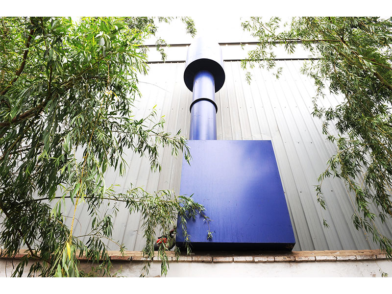 遍布車間,貫通南北的藍(lán)色通風(fēng)管道