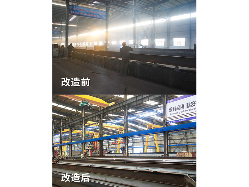 2013年,公司與北京起重運(yùn)輸機(jī)械設(shè)計(jì)研究院合作,聘請(qǐng)德國(guó)起重機(jī)專家,根據(jù)人體工程學(xué)及工件流程,完成了“單梁起重機(jī)柔性化生產(chǎn)線項(xiàng)目”。